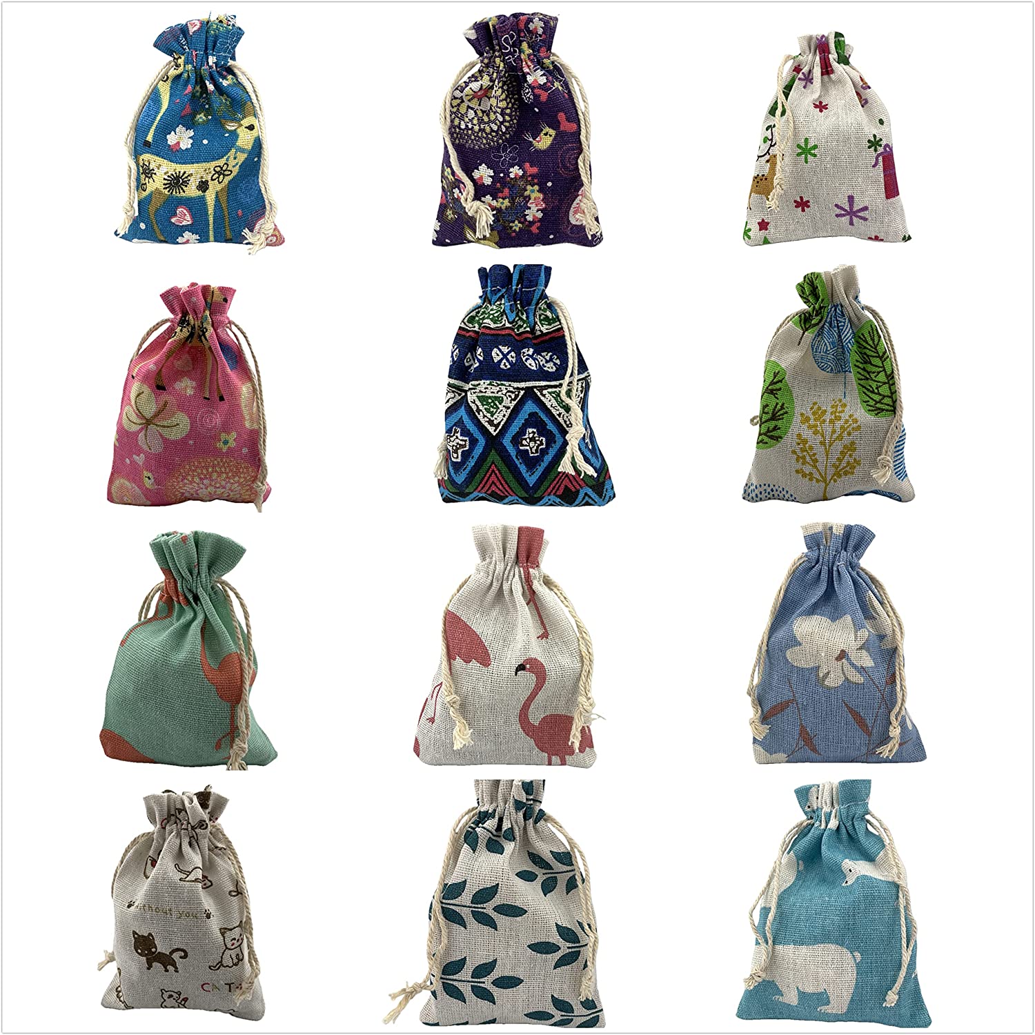 Pack Of 12 Pattern Cotton Bags Gift Bags Treat Pouches Storage Bags With Drawstring Muslin Cloth Pouches For Wedding Birthday Jewelry Party Wedding Favors Art And Diy Craft Washable And Reusable 4x5